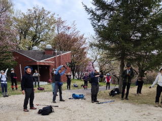 まず下山する桜公園駐車場に集合し、白鳥公園駐車場へ乗り合わせて移動し、軽い準備運動をしてから登山開始です。