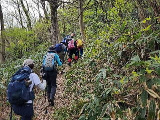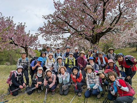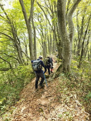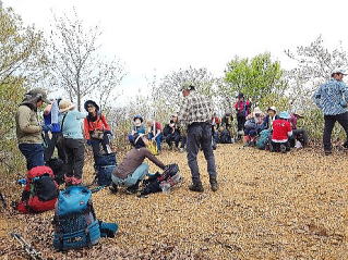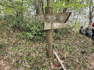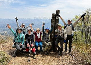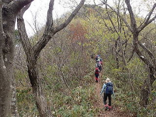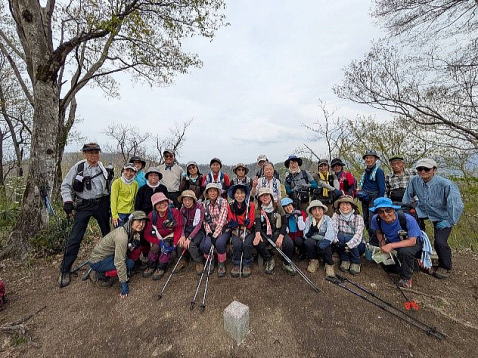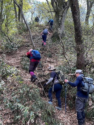 やっとやっとで大峰山に到着。大峰山から下山を始めると、今年お初のヒトリシズカに出逢えて足が止まります。最後のピークの願文山からは歌がでました。北国の春や四季の歌など楽しい歌声が聞こえてきます。足場の悪い激下りも焦らず確実に下り、最後は桜公園に無事全員で着地。