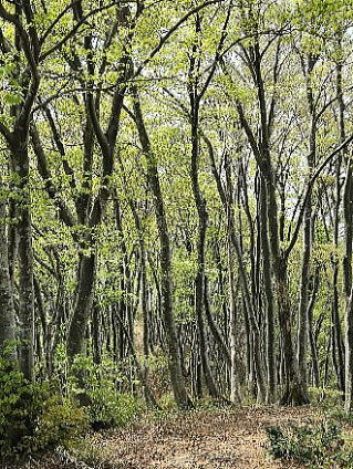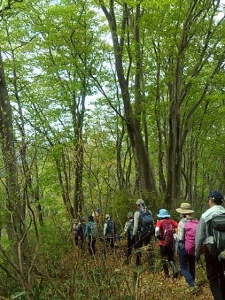 山毛欅の新緑の中に櫛形山が近づいてきて、未だかまだかの山頂にやっと辿り着きました。