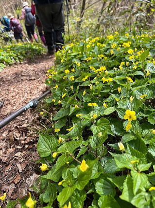 色鮮やかなオオバキスミレや終盤が近づいたカタクリロードもまだまだ見応えがあり励まされ、トキワイカリソウも柔らかな色で見事でした。シラネアオイを見つけた歓声が聞こえます。