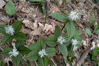 櫛形山脈には山城が沢山あり、何となく時代のロマンを感じたりはしますが歴史的な事は全く分からず、今日はそんな難しい事は考えないで、山桜、タムシバ、オオカメノキ、アブラチャン、クロモジなどの樹木の花を見て、足元には種々のスミレ、イワウチワ、ショウジョウバカマ、まだ蕾のイワカガミ、谷には未だ少し雪が見えている。