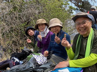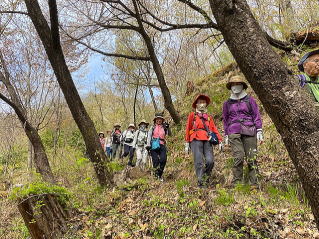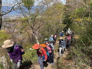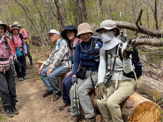 その後は烏帽子峰や蝶の森を越えて長峰山へ。ツツジが咲き始め、足元には赤いイカリソウ、可愛い蝶にも出会えた山歩きでした。