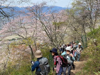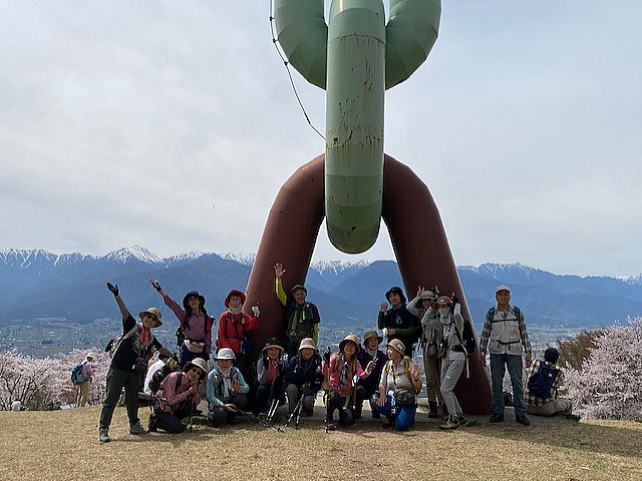 3月14日に続いて2回目の山行です。今年は桜の開花が早く14日はちょうど満開でしたが17日は散り始めとのこと。そして北アルプスも雲に隠されて見えなかったらどうしよう・・と心配しました。