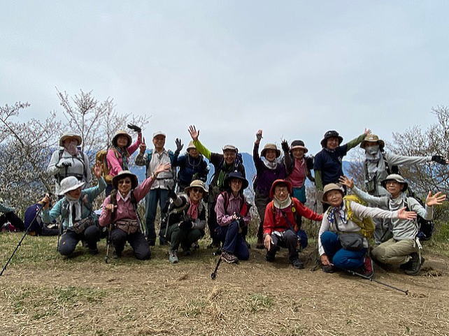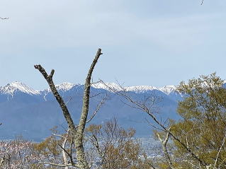 残念ながら麓の桜は散っていましたが6合目あたりからはまだきれいに咲いていて山頂は満開、木々の間から見える残雪の北アルプスの絶景を眺めながら登りました。