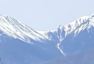 そして今回も見えました!常念岳の鞍部に槍ヶ岳の穂先が!!薄雲でバックが白っぽいためかハッキリと確認できました。