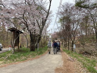 桜と新緑の中を歩く |