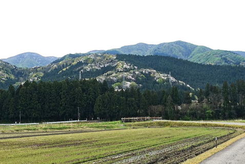 | 山桜が咲いている様です、奥に菅名山塊 |