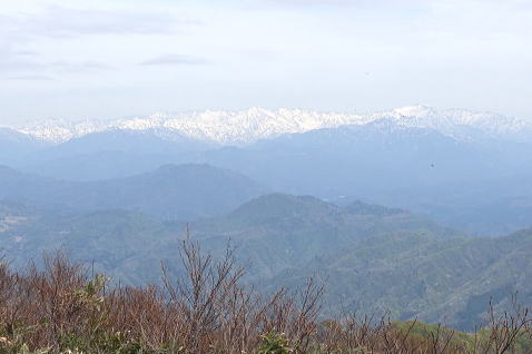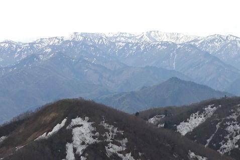 | 大蔵山頂からの粟ヶ岳(左)と白山(右) |