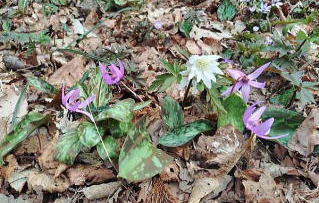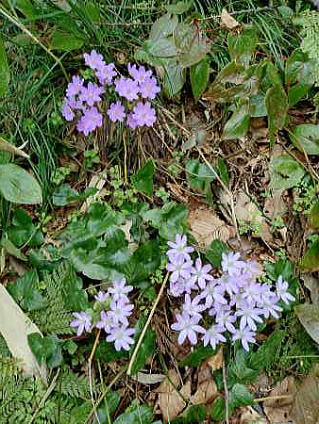 雪割草、カタクリ、キクザキイチゲ、オーレン、なんとコシノカンアオイまでが一斉に咲いていました。 |