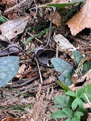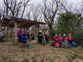 村岡城址で集合写真を撮り東屋で休憩した後、六万部塚を回るとカンアオイや珍しい雪割草を見ることができました。