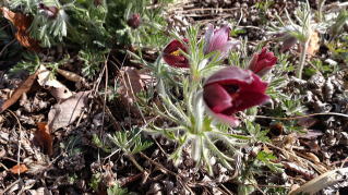 下山後のお楽しみオキナグサ(翁草)、花が終わると茎が伸びそれがまるで白髪の様に見え、それが翁草という和名の由来だそうです。 |